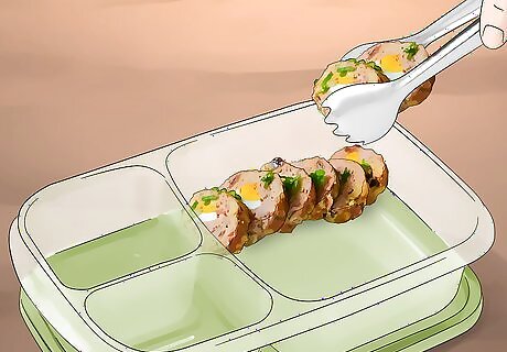 Factor leftovers into your weekly menu. Instead of trying to avoid ending up with leftovers, view them as an opportunity to save some time and money. Use one night’s leftovers in one of the following day’s meals, and you’ll cut back on the amount you have to buy and any potential food wastage. For instance, Monday’s roast chicken can become part of Tuesday’s chicken enchiladas. Or, every 2-3 days, set aside a meal as just “leftovers” and plan on reheating whatever’s remaining in the fridge.