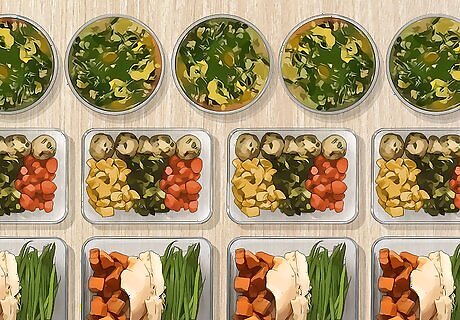 Cook meals in batches and freeze them weekly or monthly. Once you get used to planning your meals in advance, consider moving on to cooking all your meals a week or even month ahead of time. There are many ways to do “batch cooking,” but it essentially means cooking lots of meals all at once and freezing them for future use. You may want to dedicate one afternoon a week, or perhaps even just one a month, to doing your batch cooking. Some people join batch cooking clubs with friends and neighbors and exchange some of their bulk cooking with each other. You might need to invest in a separate freezer if you become a dedicated batch cooker.
