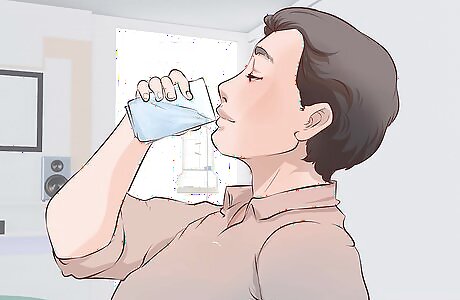 Drink plenty of fluids. Start slowly with 4 to 8 ounces at a time and use clear drinks at first if you’re suffering diarrhea or nausea. Especially when feeling nauseous or suffering diarrhea you can also try chipped ice, fruit juices, sports drinks, and ginger ale. Dehydration is a significant risk while suffering the flu or some other illnesses. So you want to make sure you are taking in plenty of water during the work day. If you go to work with the flu or similar illnesses then you should drink lots of liquids like water, clear soups, broth, or electrolyte replacement drinks until the fever resolves. Some other ways to get fluids in include gelatin and ice pops.