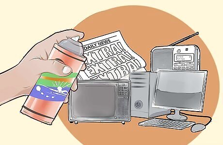 Use spray disinfectants. Having a spray can of disinfectant can help protect coworkers from contamination via surfaces. Spray handles, desk areas, seats, and if safe to do so, electronic peripherals (like a keyboard or mouse) that you might share with other coworkers. Spray down restroom surfaces in the workplace you touch too. There are any number of disinfectant sprays you can get in a store. Have one at your work station, desk, and bathroom so you can spray any surfaces you touch.