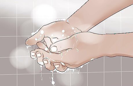 Disinfect your hands. Your hands are one of the easiest ways you can contaminate surfaces or other workers. You’ll need to wash your hands more frequently, and thoroughly while sick at work with the flu or similar illnesses. Go to your workplace’s bathroom or wash station and run your hands under warm water and soap for 20 seconds each time. If soap is not available then have soap-less (usually alcohol based) hand sanitizer with you at all times and use it often. Use it especially before and after making hand to hand contact with another person.