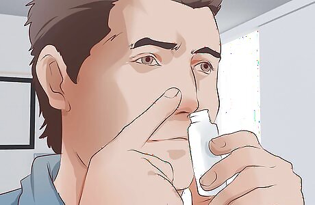 Use a decongestant spray. Open the cap. Insert the tip into one nostril and squirt in one or two pumps. Do the same for the other nostril. You may need to follow other instructions according to your doctor, pharmacist, and/or the label. These are medicated and relieve swollen or stuffy noses. Generally these are safe for most conditions including the flu, but if you’re using this for more than three days you need to stop and see a doctor. Using for more than three days can result in medication induced rebound congestion. These come in pill form too. However, either the pill or spray decongestants can increase blood pressure and heart rate. Two common forms of the oral variety are pseudoephedrine and phenylephrine—both over-the-counter. If you are going to be working then your blood pressure and heart rate may fluctuate more from the daily stress. Ask your doctor or pharmacist if you are unsure about safety issues.