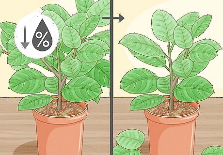 Mist the leaves when humidity is low indoors or outside. If the air feels dry to you, it likely feels dry to your rubber plant. Typically, anything below 50% humidity is low for a plant. Mist the plant gently with water once a day to help keep it happy. Use lukewarm water on your plant.