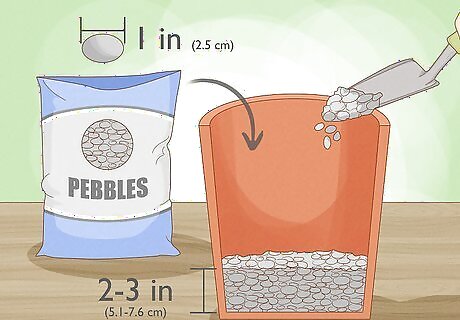 Place small pebbles in the bottom of a pot for drainage. The pebbles should be about 1 inch (2.5 cm) big in diameter. The layer of pebbles should cover 2 to 3 inches (5.1 to 7.6 cm) in the bottom of your pot. You can find these at most gardening centers. This plant likes well-drained soil, and the pebbles will help with that.