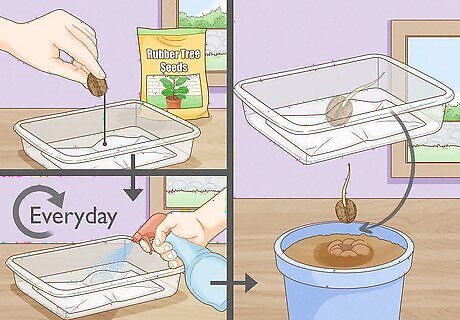 Sprout a plant from seed instead of from a stem cutting. Place a seed in a small tray. Set a piece of thin cloth or paper towel over it and mist it to several times a day to keep the seed wet. Place it in an area with indirect light. The seed should sprout in about a week, after which you can move it to a small pot to grow. Wait until the seed has roots before you move it. Be very gentle with it, as seedlings are fragile.
