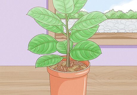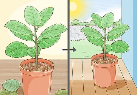 Place the rubber tree in an area with indirect sunlight. Direct sunlight is usually too much for this plant. Instead, stick it near a window that has a sheer curtain. That way, it still gets sunlight but not too much sunlight. Outside, try it in a shady area, where it will still get indirect light. You could also place it in a room that gets a lot of ambient sunlight without it directly hitting the plant. EXPERT TIP Maggie Moran Maggie Moran Home & Garden Specialist Maggie Moran is a Professional Gardener in Pennsylvania. Maggie Moran Maggie Moran Home & Garden Specialist Strike a balance between sunlight and shade for a healthy rubber tree. Horticulturalist Maggie Moran explains, “A rubber tree requires an equal amount of both sunlight and shade. Plant your tree in a location that has these conditions for best results.”