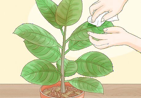 Wipe down dusty leaves on indoor plants with a soft cloth. Like anything indoors, your plant will get dusty from time to time. Use lukewarm water and a very soft cloth to gently wipe down each leaf. The water is actually good for your plant, but don't use any cleaning product on it, as your plant will not enjoy that.