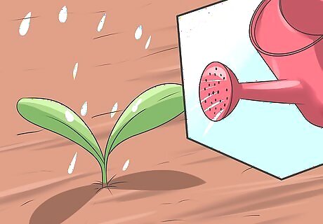 Water well. As soon as the seedlings are in the ground, you should water the soil thoroughly to help settle the soil and encourage the plants to establish themselves. There should not be any major puddles on the surface of the soil, but the soil should be visibly damp.