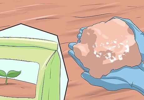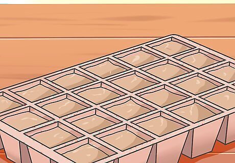 Fill small containers with seed starting medium. Fill the compartments of a large plastic seedling tray or flat with a seed starting soil blend. You can use plastic cups, pots, or other small containers if you do not have a seedling tray. The containers should be 3 to 4 inches (7.6 to 10 cm) deep.