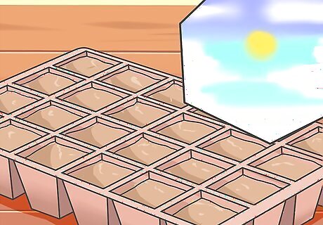 Transfer to a sunny spot. Remove the seeds from the refrigerator roughly two to four weeks before the last expected frost. Place the tray in a sunny spot indoors. This spot should receive at least six hours of sunlight each day. You will need to wait until the seedlings form before you can move anything outdoors. This will usually happen quickly.
