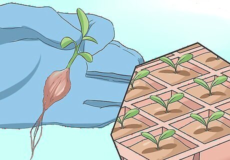 Sow the seeds. Place one seed in each seedling compartment. Push the seed into the soil until it is about 1 inch (2.5 cm) deep. Lightly brush soil over the hole created by the seed after setting it into a compartment.