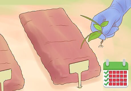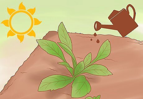 Tend to your first-year plants while they grow leaves. You want your plants to be healthy and strong before they enter dormancy in the fall otherwise you risk losing plants over the winter. Be sure that your plants get plenty of water and their recommended amount of sunlight. Avoid overwatering your plants and causing their roots to rot by not watering them on rainy days. Always check the moisture level of the soil before watering; if it is dry, then you water. If your plants are struggling to thrive in a rainy or cloudy summer, transplant them to a different area that gets more sun.