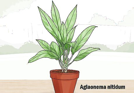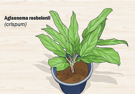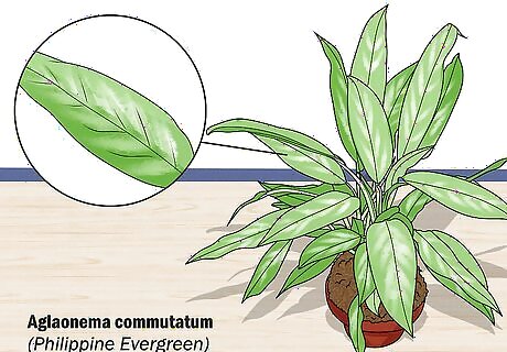 Look for the intricate silver markings of Aglaonema commutatum, which is also called the Philippine Evergreen. Cultivars and hybrids of this group are noticed for the spotty silver and green variegated foliage. Also, this group stays lower and smaller.