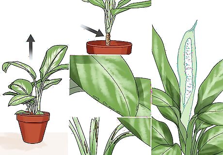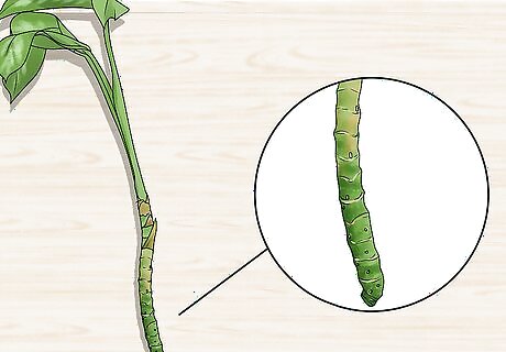 Make cuttings of stems with leaves on top. Make sure the cuttings have little white dots on the stems (called eyes), where new roots grow.