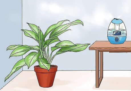 Don't worry about humidity. Aglaonemas can tolerate the dry centrally-heated air of most homes during winter. If leaves start getting dry crispy edges or spots on them, don't mist the leaves to avoid spotting. Instead, opt for more indirect humidity like getting a humidifier, placing in a plant group, near an indoor water feature or in a pebble tray. If the room is very cold, lower the humidity as well to avoid rot, fungus, and mildew problems.