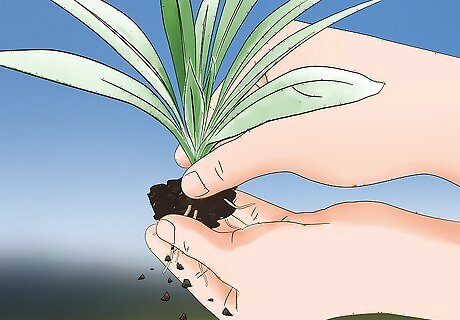 Massage the root ball gently before planting it. Water the seedling or shrub thoroughly, then remove it from its container. Gently massage the roots with your fingertips to loosen them. Massaging the roots will encourage them to spread out and establish themselves in their new home.