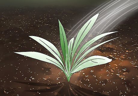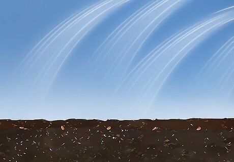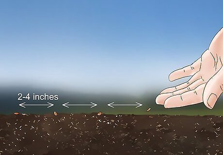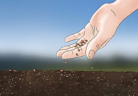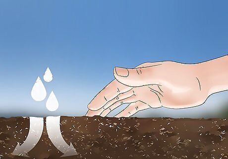Water the planting area regularly for 2 to 3 weeks. Keep the planting area moist, but avoid drenching the soil, or runoff might wash away your seeds. The seeds will sprout within 3 weeks, and you can then start watering the bed less frequently. During heavy downpours, cover seeds and seedlings with garden cloches or a tarp to keep them from getting washed away.