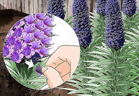 Deadhead spent flowers to encourage blooms and control reseeding. To deadhead your plants, pluck fading flowers from the central spike before they have a chance to drop a seed. For some species, deadheading can also extend the flowering period from 2 months to 4 months. All echium species self-seed, which means they drop seeds after their flowers fade. A single plant can produce around 2,000 seeds, and your echium might take over your entire garden if you allow them to freely self-seed.