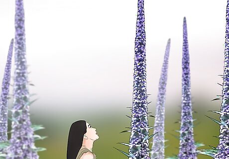 Go with a giant viper’s bugloss if you have space for a large plant. Echium pininana, also known as giant viper’s bugloss and tower of jewels, produces a 12 ft (3.7 m) crown festooned with small, bell-shaped flowers. It’s a good option if you have a lot of space and need a focal point in your garden. A giant viper’s bugloss requires enough space to accommodate its height and at least 3 ft (0.91 m) of room to spread its roots. Because it's so tall, it needs protection from the wind, so the best planting spot would be by a wall or fence. Since the flowering spike doesn't grow until the second year, the plant needs to survive winter. While it might be able to handle 1 or 2 nights just below freezing, it’s not the best choice for colder climates.