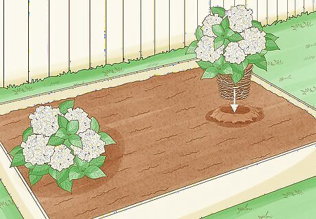 Dig a wide hole in the soil. The hold you dig should be as deep as the root ball on the hydrangea plant, and at least twice as wide. Use a spade or shovel to dig a big hole to accommodate the plant's roots. If you're planting more than one hydrangea, they should be spaced 5–7 feet (1.5–2.1 m) apart, since the plants can grow to get very large. Check the instructions that came with your particular hydrangea variety. Some hydrangeas can be planted closer together, while others may need to be planted at least 10 feet (3.0 m) apart.
