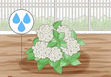 Keep the soil moist. Hydrangeas will begin to wilt if the soil gets too dry, so make sure you water them every day or two, especially during the hot summer months. Water the hydrangeas near the base of the plants and above the roots, rather than spraying the water directly onto the flowers; this prevents the flowers from getting burned by the sun.