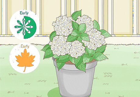 Plan to plant in the spring or fall. Planting in one of these milder seasons will give the hydrangeas time to acclimate to the soil conditions and take root before the weather gets more extreme. Look for hydrangea plants in your nursery in early spring or early fall.