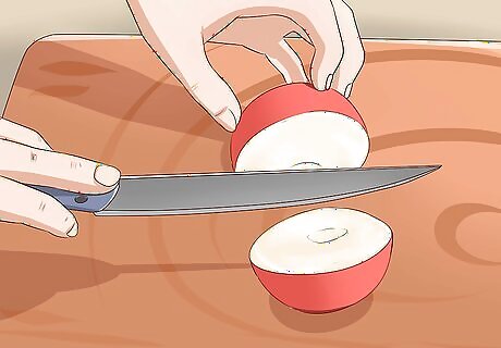 Cook the recipe at the directed temperature. Even though you're cutting the ingredients in half, you don't need to change the cooking temperature. Reducing the oven temperature could mean that the food wouldn't cook fast enough and could cause foodborne illness. Raising the oven temperature could cause the food to brown quickly or even burn. For example, if you're supposed to sauté chopped onions over medium heat for 8 to 10 minutes, you'll still need to keep the heat at medium. The only time you might need to adjust the temperature is if you're using a glass baking dish instead of a metal one. In this case, reduce the oven temperature by 25 degrees.