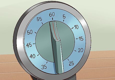 Check the food halfway through the cooking time. If you are baking half a recipe in a dish that is of half its original size, you might need to reduce the cooking time, as well. Begin checking the food halfway through the cooking time. It probably won't be done just yet, but check it every few minutes after this point. Keep in mind that if you're cutting the number of something, such as cookies or cupcakes, they'll still need to bake for the recommended time. For example, if you're baking brownies, begin checking them at 20 minutes instead of 40 minutes, especially if you don't adjust the pan size.