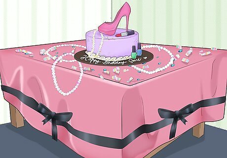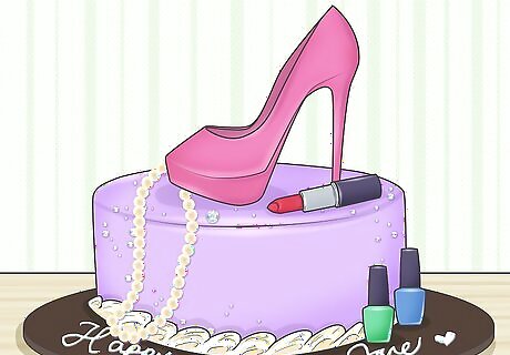 Make a fashion-themed cake. Bake a cute purse cake or a regular sheet cake and decorate it with fashion-related flourishes such as plastic doll shoes, bows, or plastic jewelry. If you prefer cupcakes, consider baking high-heel cupcakes.