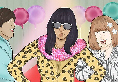 Experience life as a super model with a fashion runway. Create a runway by putting a narrow rug or taping colored paper down to the floor. Have a bag of fashionable or silly clothes and accessories ready for guests to put on. Play some runway music and enjoy walking the runway and posing for pictures with your friends! If you want, you can choose a judge to decide who has the best runway walk, or you can just have fun without competing! To prepare the runway outfits, you can raid your parent's closet (with permission), purchase items at a thrift store, or ask your guests to bring stylish or over-the-top items. If you decide to hold a design competition, you can also model these outfits on the runway.