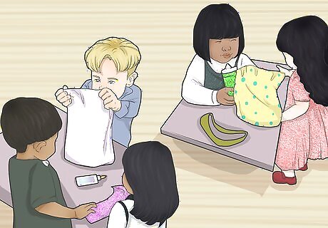 Showcase creativity with a design competition. Make small teams of 3-4 guests each and give each team a bag of design materials. Set a timer for 30 minutes and shout, "designers go" to let everyone know when to start. You can have parents act as judges to decide which design wins. Your bag of design materials should include fabric such as old garments or bedsheets. Tissue paper can work well too. Streamers, lace, feathers, bows, ribbons, and glitter all make great decorative items for the design bags. Don't forget tools such as scissors, tape, or safety pins.