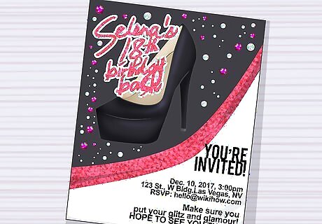 Create fashion-themed invitations. Invitations are a great chance to get everyone excited about your party and to inform them about its fashion theme! You can purchase invitations, or you can make your own invitations. Use stencils to cut invitations into the shape of a high-heeled shoes and dresses or glue Barbie clothes onto the invitation for a 3D look.