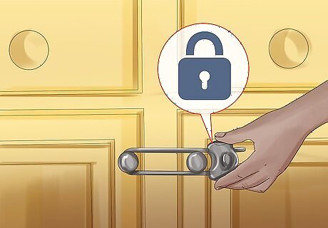 Secure low, food-filled cabinets with childproof locks. Potbellied pigs are intelligent animals, and they can be sneaky when it comes to getting food. To prevent your pig from getting into your cabinets and eating your food when you’re not around, keep them shut using childproof locks. Depending on how determined your pig is to find food, you may need to attach a childproof lock to your refrigerator as well. Since potbellied pigs can grow to be 26 inches (66 cm) tall, you'll want to secure any cabinets that are below that height.