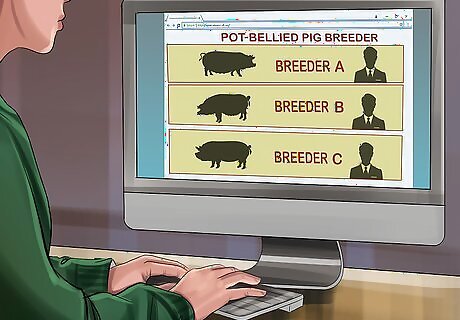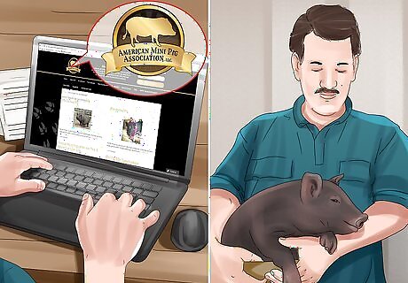 Adopt a potbellied pig from a reputable breeder or rescue. Adopting through a reputable breeder or rescue is the best way to ensure you get a potbellied pig that’s healthy and socialized. You can find a breeder or rescue by searching online for one in your area. You can also find reputable potbellied pig breeders by visiting http://americanminipigassociation.com/. Read online reviews of breeders and rescues before you adopt through them to see if they’re reputable.
