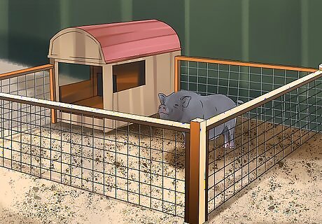 Set up an outdoor shelter for your pig if it will be outside a lot. Potbellied pigs love to run around outside, but they’ll need somewhere to rest and get some shade. If you’re going to be keeping your pig outside for long periods of time, set up a dog house or other shaded shelter for your pig to hang out in when it’s tired. Fill the shelter with blankets or straw so your pig is comfortable. Make sure the shelter will protect your pig from wind and rain.