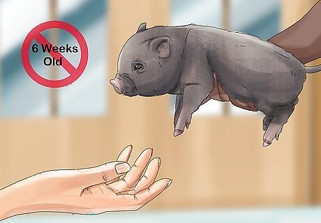 Avoid adopting a potbellied pig that’s younger than 6 weeks old. Piglets that are taken away from their mothers before 6 weeks of age can develop behavioral and health problems down the road. You'll want to make sure the pig you're adopting is at least 6 weeks old. If a breeder or rescue is adopting out piglets that are younger than 6 weeks old, it's a sign that they’re not a reputable or responsible organization.