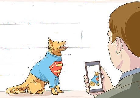 Take pictures. Another fun activity for a walk is taking photos as you go. Doing so will engage you in your surroundings as you always hunt for the next pretty picture. Plus, you'll likely capture some good shots of your dog being goofy and fun. You can even post a few pictures online after your walk to let others see what you've been up to and help you create lasting memories of your walks.