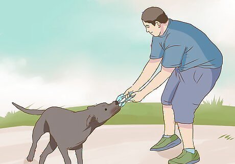 Encourage play. Your dog will likely enjoy playing with you whether you're on a walk or at home, though some may need to get used to the idea in public. For instance, you can take a tug toy along with you to bring out at different times during the walk. You could also crouch down and act like you're stalking your dog (in fun). Try any game your dog seems to enjoy.