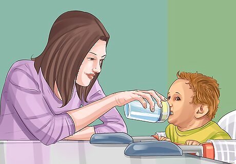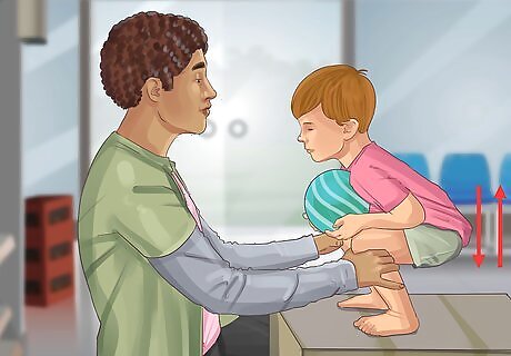 Have your toddler do simple strength-building activities. Ask your child’s doctor or physical therapist to recommend exercises that build muscle strength and endurance. For a toddler, this probably won’t involve formal strength training (such as lifting weights or using resistance bands). However, your toddler can begin building their strength and coordination by doing simple activities such as: Bouncing a balloon from one hand to the other. Picking up and carrying light objects. For example, you might ask your toddler to pick up a can of soup and carry it across the room to you. Simple body-weight resistance exercises, such as push-ups or animal walks.