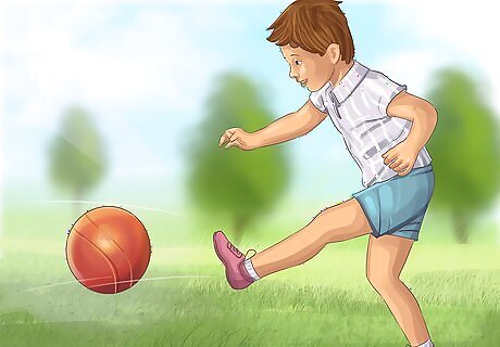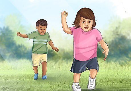 Let your toddler play outside. If your toddler is feeling well enough, take them outside and encourage them to move around, explore, and play freely. Outdoor play in public spaces, such as parks and playgrounds, can also provide opportunities for socialization with other children. If your toddler is too ill to do much playing on their own, you can help them by pushing them in a swing, going down slides with them, and guiding them along monkey bars.