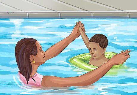 Try water-based exercises if your toddler has joint problems. Swimming and other water-based activities can be especially helpful for kids who have problems with joint pain or who can’t do high-impact activities. Water exercise is also less likely to trigger asthma attacks than other forms of exercise. Ask your child’s pediatrician or physical therapist to recommend water-based exercises for your toddler. You can also try a few simple activities on your own: Hold your toddler in the water and encouraging them to kick their legs. Turn cups upside-down so that air is trapped inside them and asking your toddler to push the cups under the water. Release rubber duckies or other floating toys in the shallow end of the pool and asking your toddler to walk around in the water and “catch” them. Always supervise your toddler closely during pool activities, and always keep them within arm’s reach.