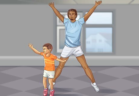 Dance with your toddler. Dancing is a great way to encourage movement and build coordination. Put on some up-beat music and let your toddler dance free-style, or demonstrate a few simple dance moves and try to get them to follow your lead.