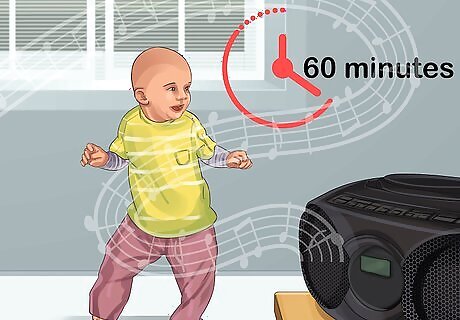 Encourage your toddler to spend at least 60 minutes on free play daily. Pediatricians recommend that children aged 1-3 have unstructured physical activity for at least an hour daily. This could be as simple as just letting your toddler run around in the back yard or turning on some music and encouraging them dance. Ask your child’s doctor or physical therapist what amount of unstructured physical activity is appropriate for your child.