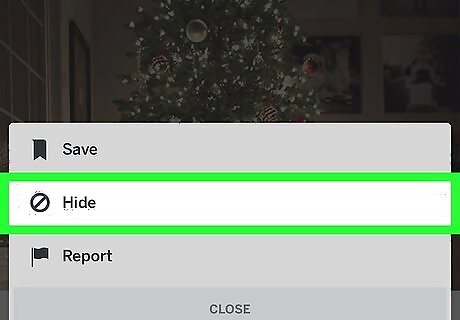 Tap Hide in the popup menu. You will see a bar that says "This post is now hidden" at the bottom of the screen.