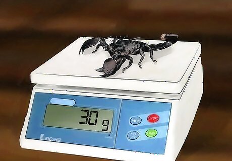 Gauge the weight. If you hold or pick up an Emperor scorpion, you may be surprised at its heft. Adults can weigh around an ounce (30 g). Don’t handle a scorpion unless you know that it is a relatively safe species. Even species kept as pets, like Emperor scorpions, can become aggressive when threatened or handled.