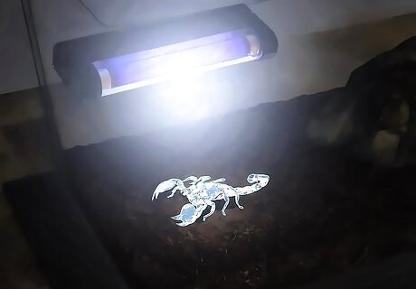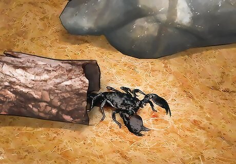 Study the scorpion’s activity. Emperor scorpions are basically nocturnal creatures, and will be more active at night. They will move about on the ground, but will sometimes burrow under rocks and logs.