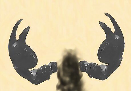 Observe the physical features. The two pedipalps (pincers or claws) of Emperor scorpions appear quite large. The scorpions will have eight smaller legs behind these. Like other scorpions, the Emperor species has a long tail (telson) that ends in a stinger. Emperor scorpions have larger pectines (sensory organs) behind their limbs, which look like combs. These are larger in males than in females. Emperor scorpions will molt frequently, which may change their body features or coloring slightly. After molting, their exoskeleton is very soft and can be easily damaged.