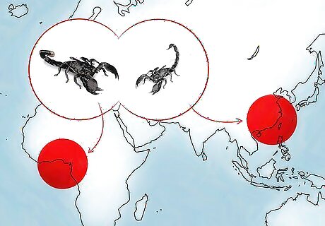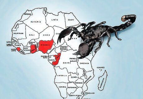 Identify the scorpion’s habitat. If you are observing a scorpion in the wild, you may be able to narrow down its species by considering its habitat. Emperor scorpions are native to West Africa (in areas like Nigeria, Togo, Sierra Leone, Ghana and the Congo region). They prefer hot and humid forests, and like to be near leaf debris, bark, and termite mounds. In the wild or in captivity, Emperor scorpions may live communally in small groups.