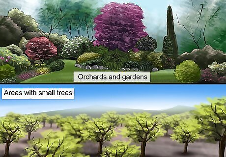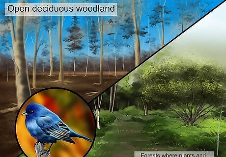 Look in the forest. Indigo buntings like brushy forest edges or open deciduous woodland.They also like forests where plants and shrubs are starting to grow. The nest is most likely to be on the edge of the woodland. Look out for fledglings in the nest in spring. Watch out for indigo buntings hunting in low vegetation. They forage for seeds and eat insects off of branches.