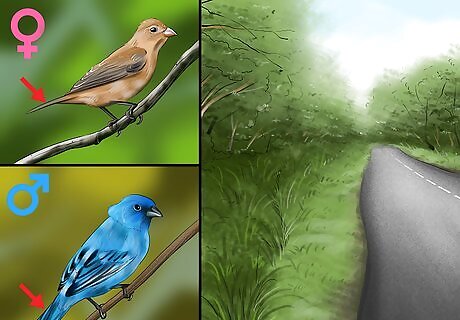 Look out for indigo buntings in particularly weedy areas. They love hidden areas, especially where fields meet forests. Weedy areas are mainly found in fields, not forests. Try searching in the furthest corners of fields for overgrown areas. Do not expect to find indigo buntings in a field full of animals. They are naturally 'shy' birds and do not like to be near larger animals.